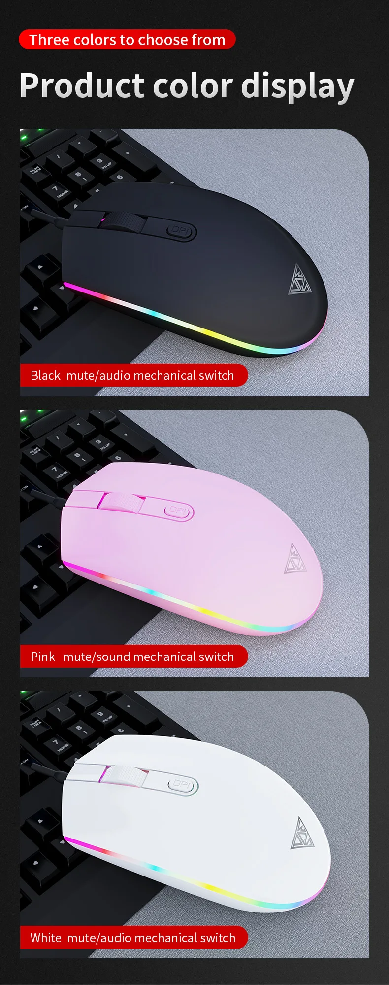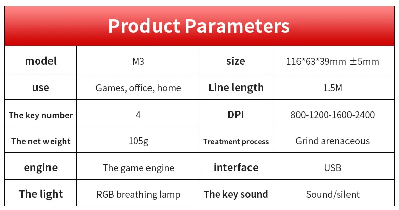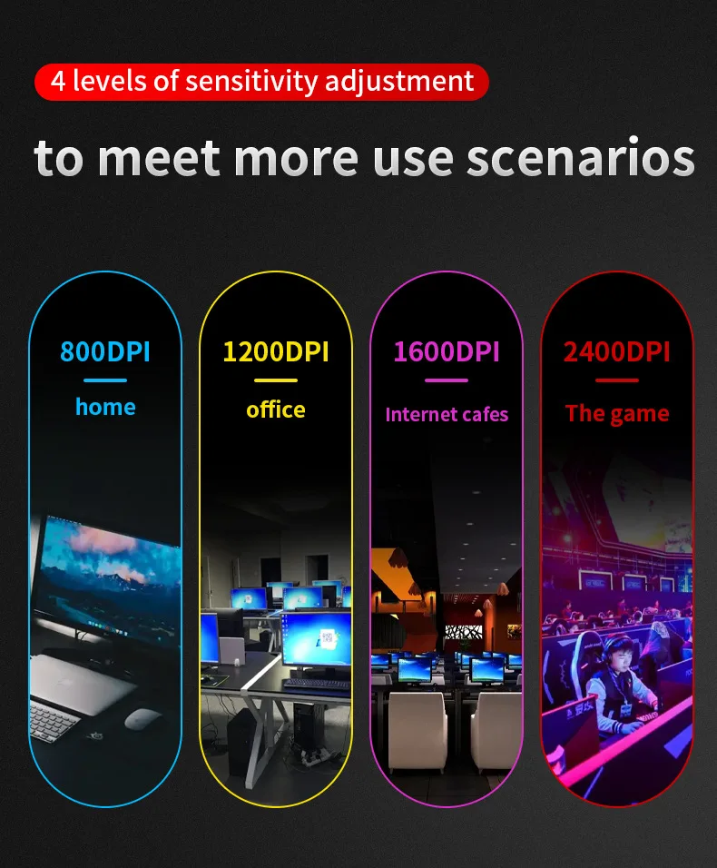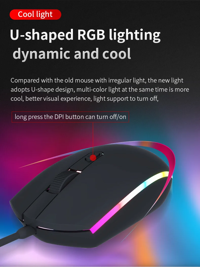 Mouse Gamer com Fio para Jogos 2400 DPI com Luz de Respiração RGB